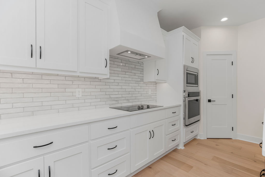 Kitchen cabinets with 3” drawer pulls and knobs for doors